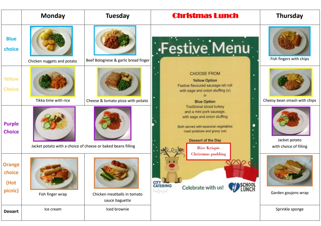 A special Christmas menu will be served on Wednesday 17th December